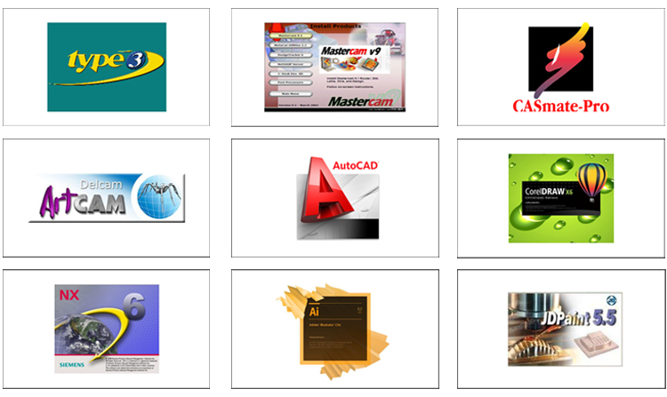 支持Type3、MASTERCAM、CASMATE、Art CAM、AUTOCAD、UG、CorelDraw等多种CAD/CAM软件生成的G代码和PLT代码格式。