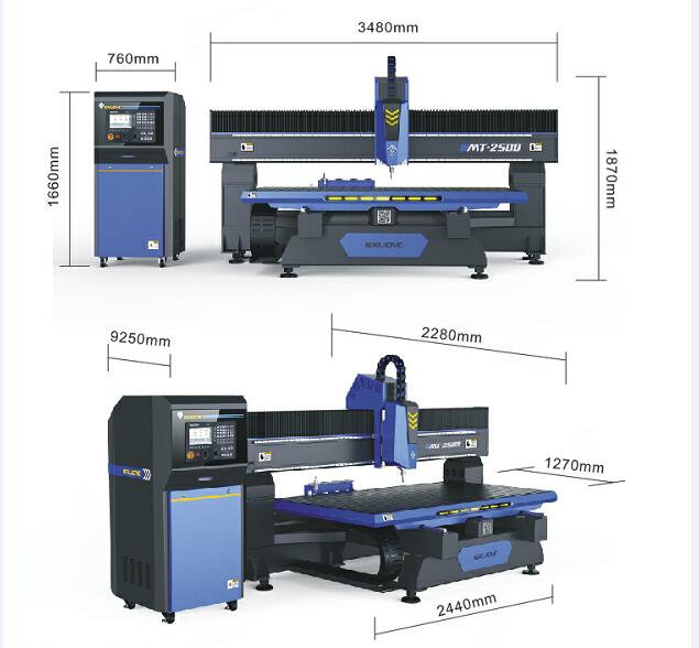 MT2500S是GXUCNC(广旭数控)全新研发生产的一款重型雕铣切削多用途数控加工中心设备,采用定柱式框架龙门,台面移动的传动模式,工业重载钢结构设计,严格按照要求退火去应力处理,具有高精度、高转速、恒扭矩、低跳动,稳定强、寿命长的工业特点,广泛应用于广告业、电子业、木工家具业、建材业、迷你发光字、有机玻璃制品、铝高光制品、橱柜门加工等领域。
