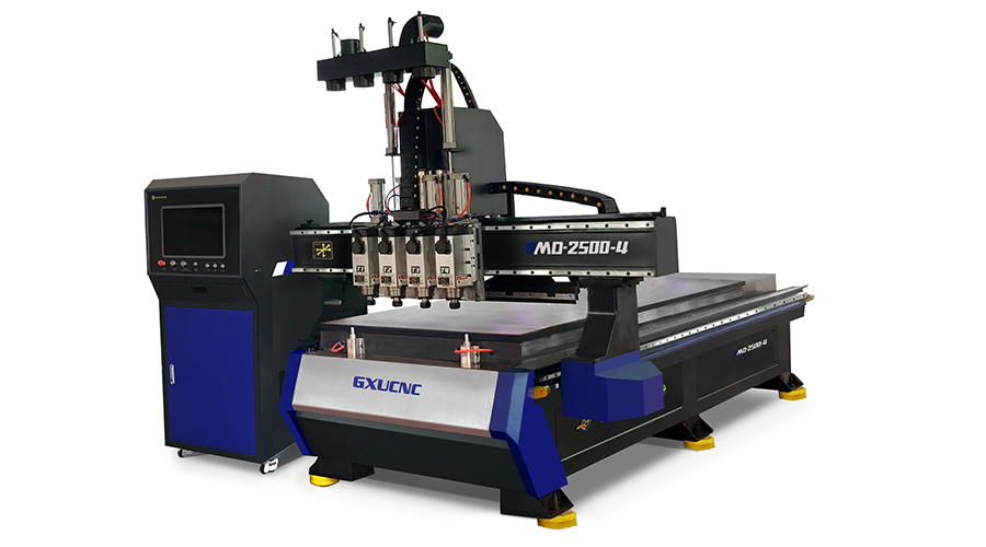 MD2500S-4是GXUCNC(广旭数控)全新研发生产的一款四工序高速木工雕刻机,具有高精度、高转速、恒扭矩、低跳动,稳定强、寿命长的工业特点,适合木材、亚克力、抗倍特板、人造石、环氧树脂、PVC、ABS、铝、铜、铝这、宝丽龙等。广泛应用于板式家具、实木家具、电子产业、广告装饰、音响乐器、软包、幕墙等。