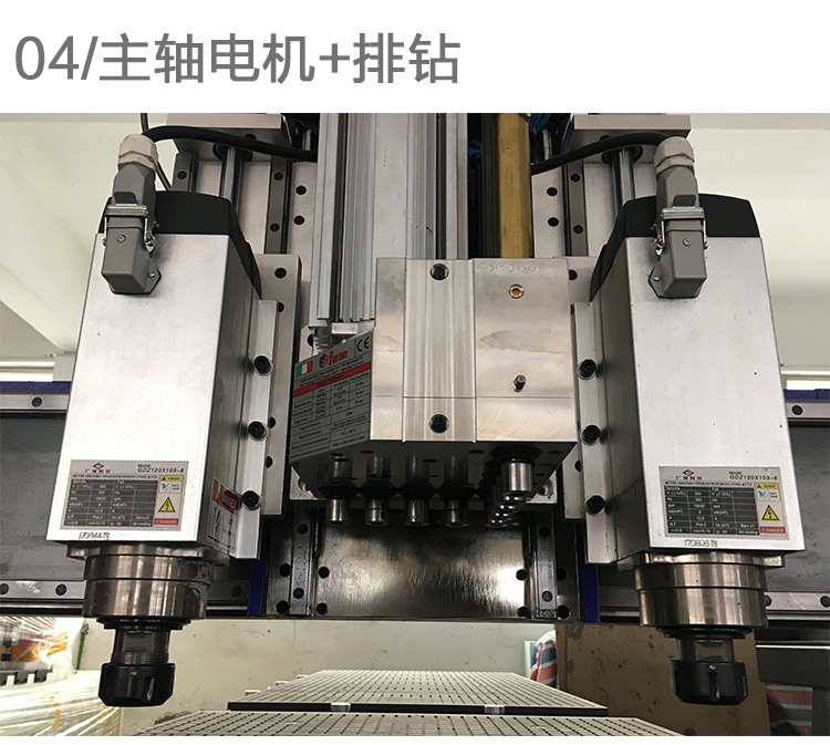 采用6.0KW风冷主轴。 双工序,各主轴可实现相互切换,提高工作效率. 具有高转速、静音的特点。