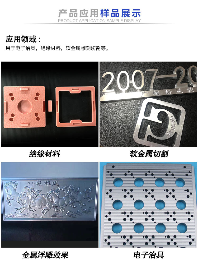 ■这是一款高精度的加工设备,比较适用于一个工件多把刀具以及高光、高精度的切割和雕刻。其加工工件底部无底纹,侧面无振纹。