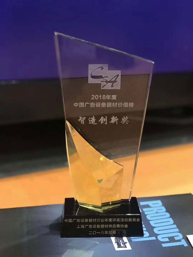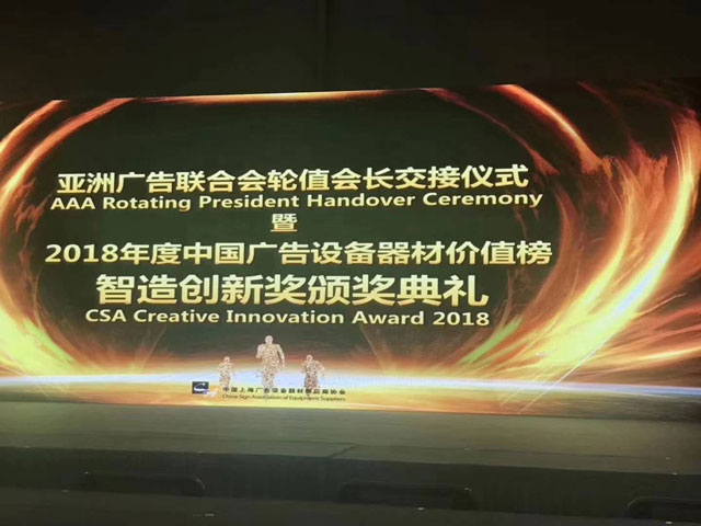 热烈祝贺广旭荣获2018年度中国 广告设备器材智造创新奖!