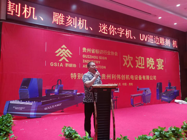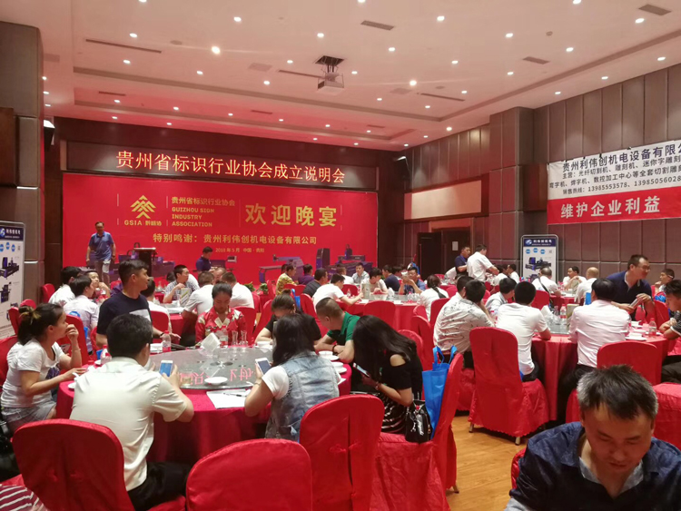 2018年5月19日,在中国·贵阳市,隆重举行了贵州省标识行业协会成立说明会。贵阳省标识行业协会(筹)成立说明大会成功召开,参加会议的有来自贵阳及贵州省各地州的120余家企业代表出席。筹备组详细的介绍了关于成立协会的意义和作用,广大会员加入协会可以享受的权利和义务等等。经过筹备组委会的详细介绍,广大业内同仁们信心满满,热情高涨,对于贵州标协的诞生充满期待,对于标协的未来充满信心。报名现场络绎不绝,纷纷主动报名,热闹非凡,当天报名企业达到了120余家,说明会圆满成功。广旭数控贵州省唯一指定经销商:贵州利伟创机电设备有限公司的独家冠名赞助欢迎晚宴将大会推向高潮,广大业内精英们欢聚一堂,觥筹交错,欢声笑语,好一片喜庆祥和的景象。