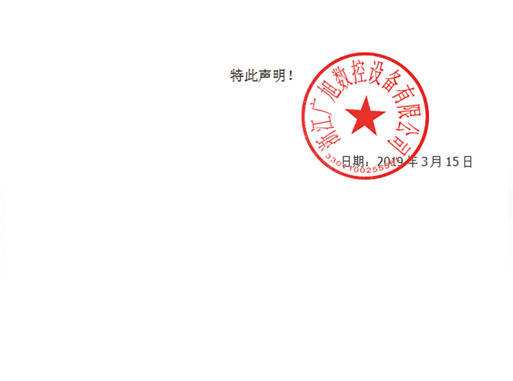3、任何第三方打着“广旭数控”名义生产或销售非我公司生产的机器均属侵权行为,本公司享有追究其法律责任的权利。