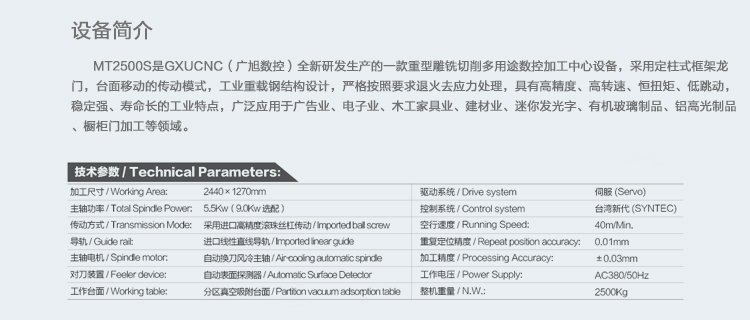 MT2500是GXUCNC(广旭数控)全新研发生产的一款重型雕铣切削多用途数控加工中心设备,